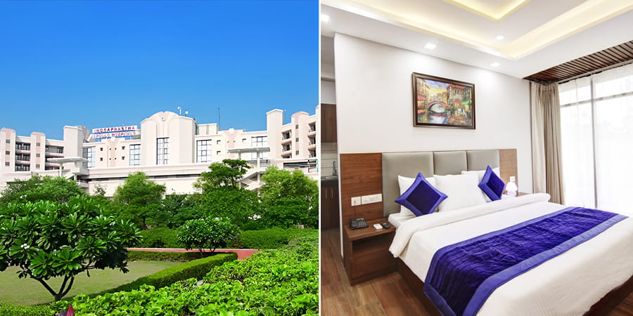 · Near to the hospital: Being very close to the hospital, patients and their families can reach the hospital on time without worrying about traffic. Metro connectivity and necessary medical and day-to-day facilities in the vicinity make the entire stay easy and comfortable, thereby relieving unnecessary rush during treatment.